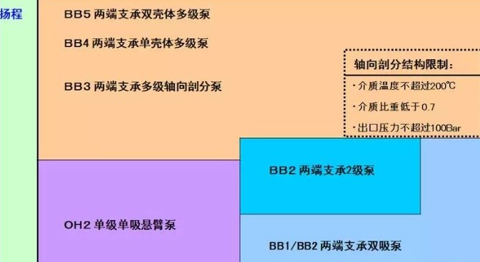 (5) 介質(zhì)溫度:介質(zhì)溫度超過(guò)200 ℃,選用徑向剖分式泵,泵腳中心線(xiàn)支撐。則可選擇的泵型為OH2型或BB2型泵(公眾號(hào):泵管家)。