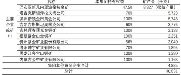 紫金核心在產(chǎn)黃金項(xiàng)目主要有境內(nèi)的福建紫金山金銅礦、吉林曙光金銅礦、貴州水銀洞金礦、河南上宮及陸院溝金礦、山西義興寨金礦、內(nèi)蒙古蘇尼特左旗金礦,境外的巴布亞新幾內(nèi)亞波格拉金礦、澳大利亞帕丁頓金礦、塔吉克斯坦吉?jiǎng)?塔羅金礦、吉爾吉斯斯坦左岸金礦等。